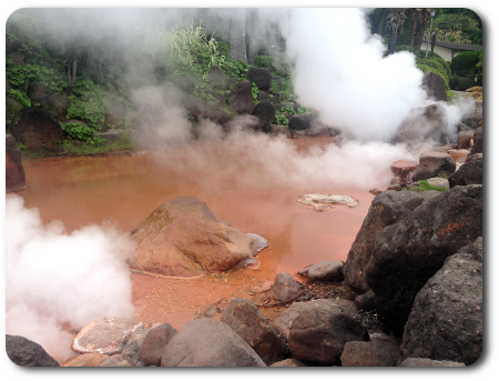 別府市内の温泉には、自然に演出されたその恐ろしい光景から、「地獄」と呼ばれている観光スポットが実にたくさんあります。まさに地獄だらけです。で、一般的には、「別府地獄組合」(ど迫力の名称ですね)に加盟している8箇所のスポットを観光する「地獄めぐり」が最もメジャーとのことです。